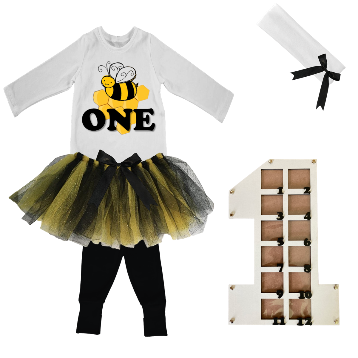 1st Birthday|Bee Tutu With Headband And Photo Frame
