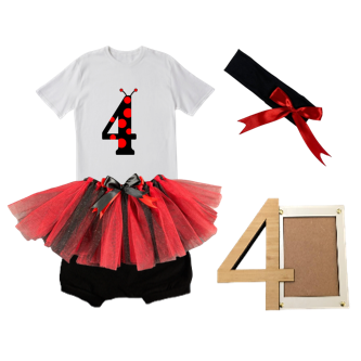 4th Birthday|Lady Bug Tutu Outfit With Headband And Photo Frame | 4