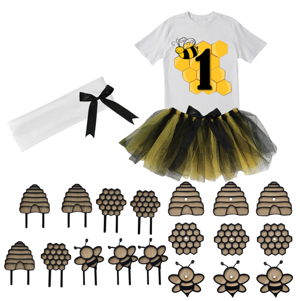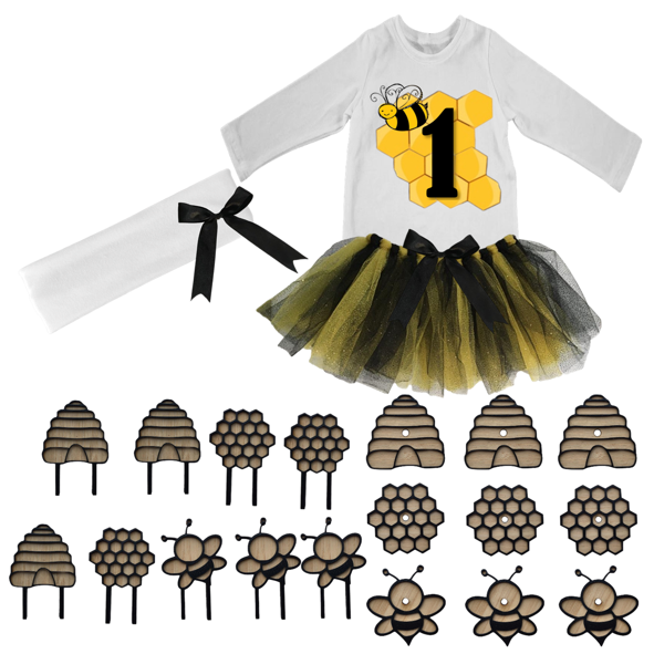1st Birthday Party Combo Tutu And Cupcake Toppers & Lollipop holders | Bee