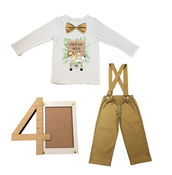 4th Birthday | White & Stone with suspenders & Bow tie | Wild One | Safari | Afrikaans