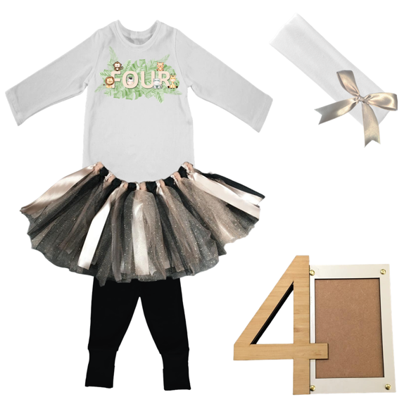 4th Birthday Safari Tutu With Headband And Photo Frame | 4
